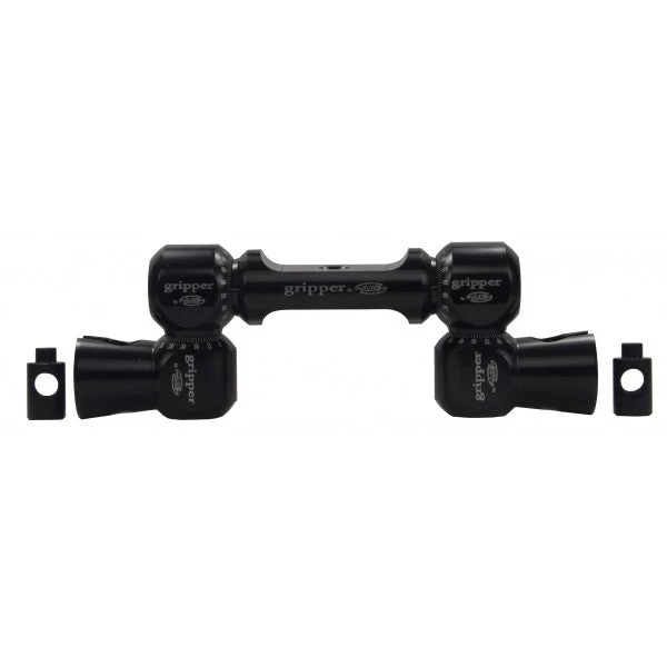 The Double V-Bar Gripper by AAE offers unmatched adjustment and stability for archers using double v-bars. Featuring 7075 Aluminum the wider “Body” portion offers additional clearance while the tapered engagement provides maximum surface area contact for the ultimate in rigidity. AAE’s proprietary BLS (Bolt Lock System) automatically micro drives the parts out when the user loosens the bolt. The BLS prevents unwanted seizing or binding common with anodization, allowing the user to quickly and easily make adjustments. Laser etched reference marks allow the archer to monitor the smallest of adjustments. The recessed mounting hole makes for a clean finished look when mounted. #Getagrip