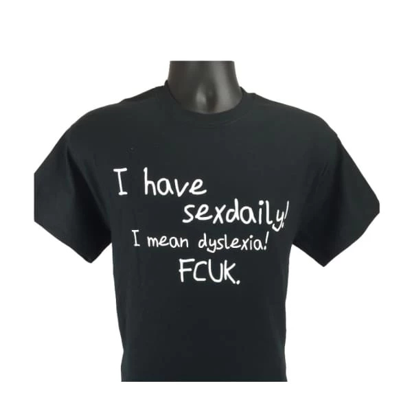 I have sexdaily! I mean dyslexia! Fcuk t-shirt. Give your friends a laugh and have Fun! Locker tag/small white Badass Outdoor Gear logo on back.