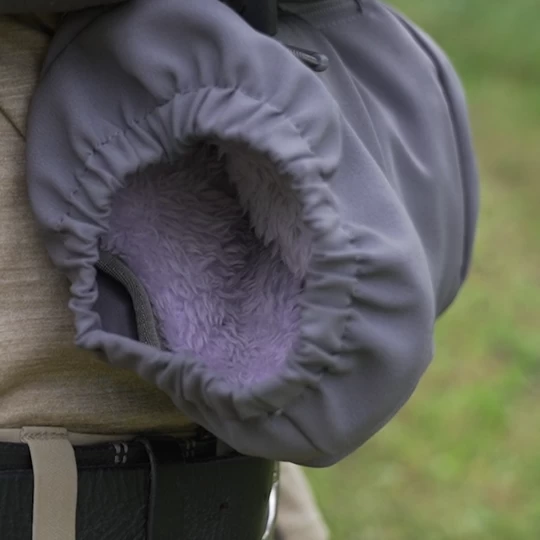 Keeping your hands warm without wearing gloves and losing fine motor dexterity was the main goal of the Recon Handwarmer. The handwarmer attaches to the bottom of the Recon Modular Bino Harness and keeps your hands optimally positioned for comfort while sitting or standing. Additional air activated hand warmers can be kept in the front zipper pouch where an included waist belt is stored to be able to use the handwarmer independently from the Recon.