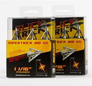 The new for 2017 SlickTrick Pro Series ViperTrick uses an all stainless steel construction. These broadheads penetrate further and do more damage than ever before. Best yet, because they resist corrosion, you never have to worry about having a sharp edge.