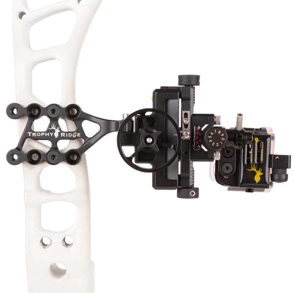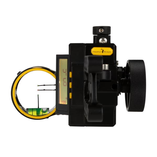 Meet the all-new Digital React Trio Pro by Trophy Ridge. For nearly a decade, Trophy Ridge’s React®️ Technology has been the preferred sight technology by archers around the world. React Technology is the fastest and most efficient technology when sighting in a bow for the first time. In a mere 10 minutes or less, have your bow dead-on from 20 to 100+ yards. For 2022, Trophy Ridge has upped the ante with the new Digital React sights powered by Trophy Tech®️, the muscle behind Trophy Ridge’s technology. The Digital React Trio Pro bow sight features a highly-visible LED screen with a digital readout of targeted distances. The sight weighs a total of 13oz.
